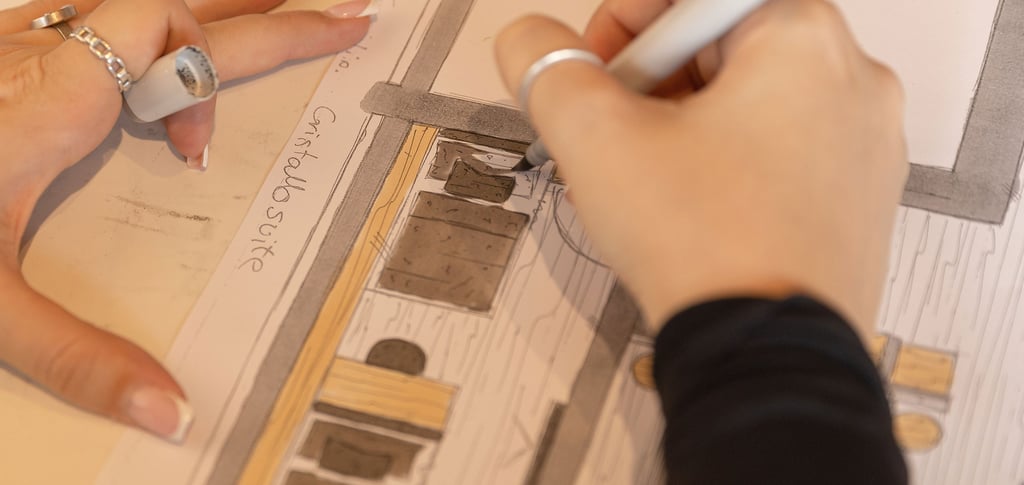 Skizzen machen Ihre Unterkunft bereits online spürbar: mit klarer Raumaufteilung, stimmiger Möblierung und einer Bildsprache, die zeigt, wie es sich anfühlt, dort anzukommen.