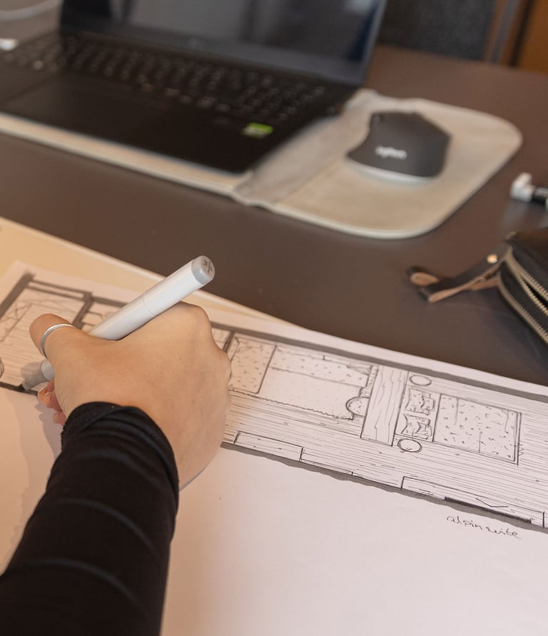Ich erstelle Grundrissskizzen und atmosphärische Raumvisualisierungen für Website, Inserate und Präsentationen.
